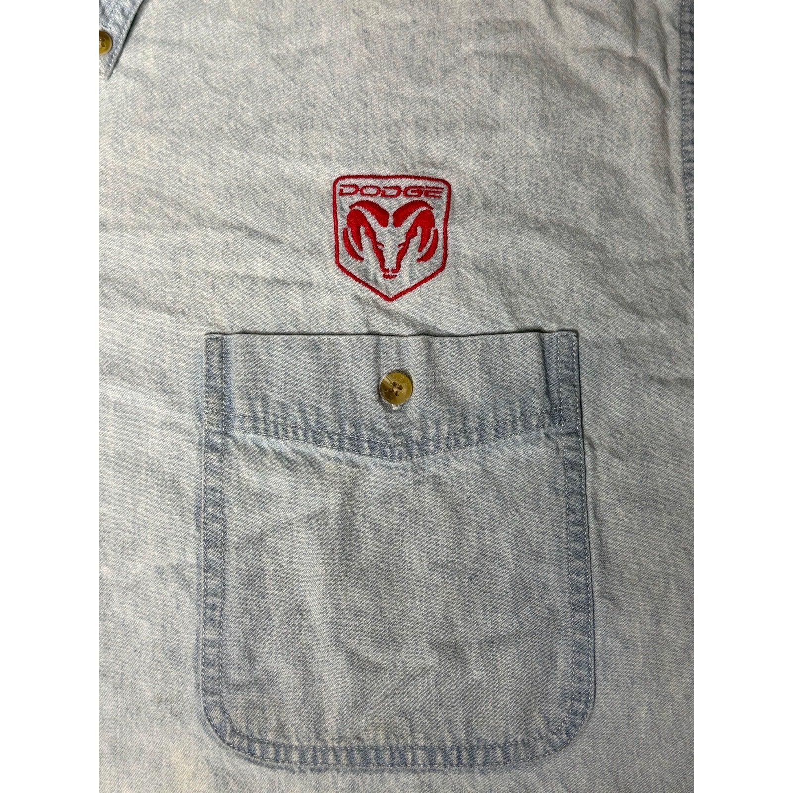 Dodge Ram Embroidered Lee Button Down Denim Jean Shirt XL
