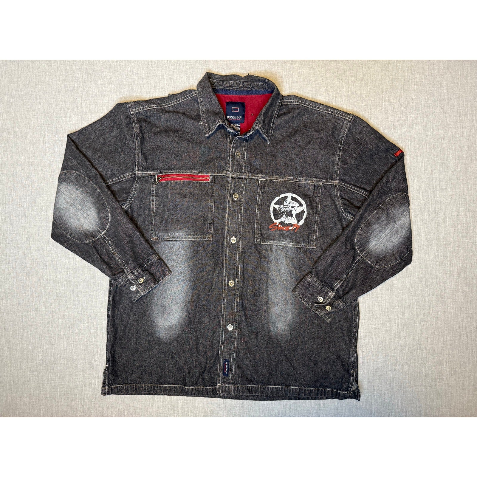 Vintage Bugle Boy Jean Company Button Up Faded Denim Shirt Large
